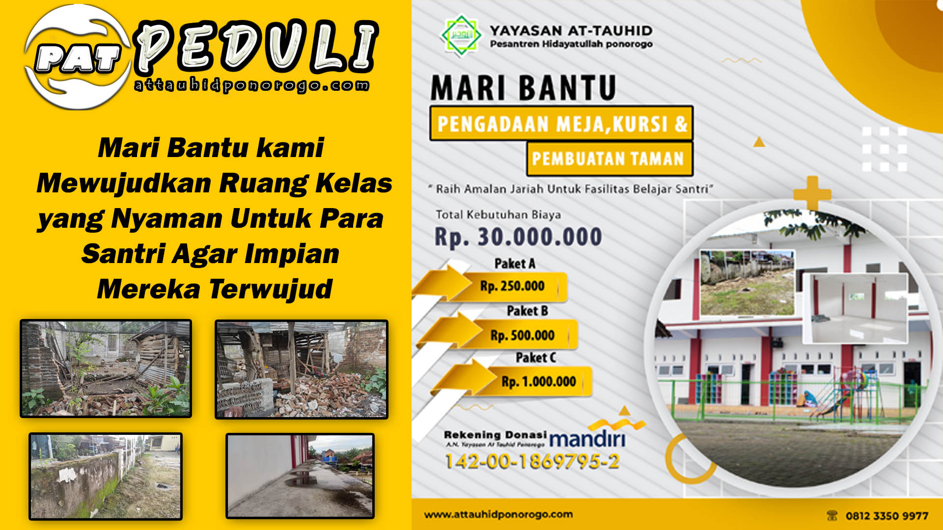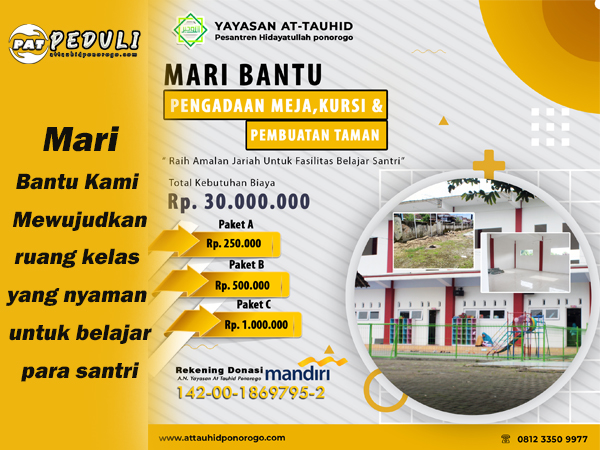 Peduli At-Tauhid merupakan milik Yayasan At-Tauhid Pesantren Hidayatullah Ponorogo yang telah mendapatkan pengukuhan dengan Legalitas SK dari Menkumham AHU-06475.50.10.2014 & Akta Notaris Kristanti Suryani, SH,M.Kn NO. 15. yang bertugas untuk menghimpun dana masyarakat berupa zakat, infaq, shadaqah, wakaf,hibah, kemanusiaan dan dana halal lainya untuk disalurkan kembali kepada yang berhak menerimanya sesuai dengan ketentuan syariah.